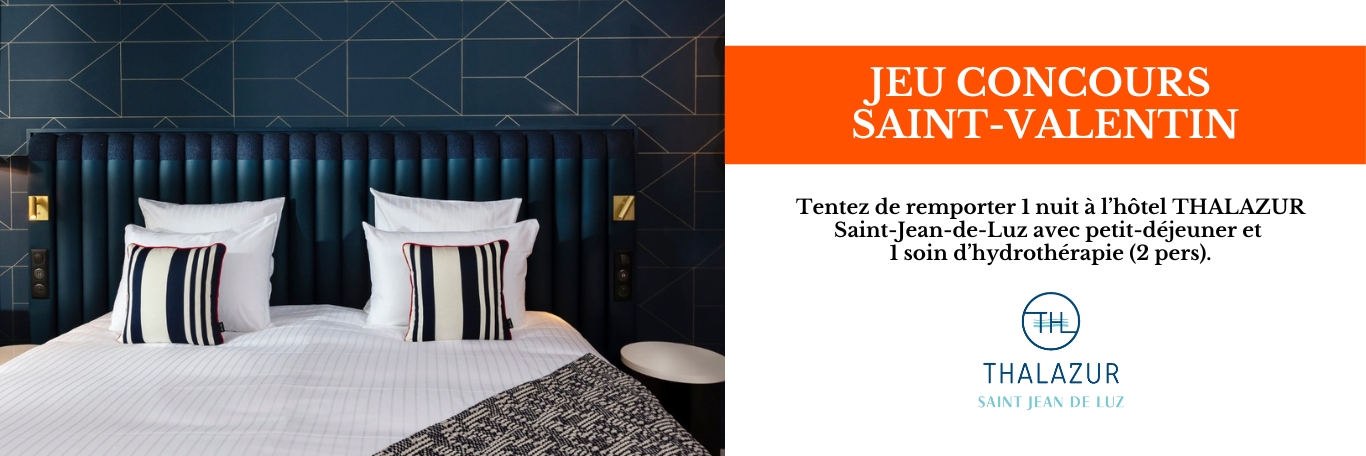 A l’occasion de la Saint-Valentin, tentez de remporter 1 nuit à l’hôtel THALAZUR Saint-Jean-de-Luz avec petit-déjeuner et 1 soin d’hydrothérapie (pour 2 personnes).