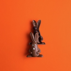 Lapin chocolat au lait T1 vide, accompagné de quelques fritures lait et noir , 40g