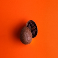 Oeuf chocolat au lait T2 vide, accompagné de quelques fritures lait et noir, 110g