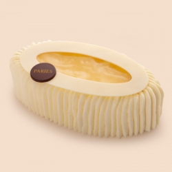 Crème légère aux citrons jaunes, crémeux de Yuzu, marmelade de citron Meyer biscuit cake au citron sur un croustillant aux Amandes Marcona.