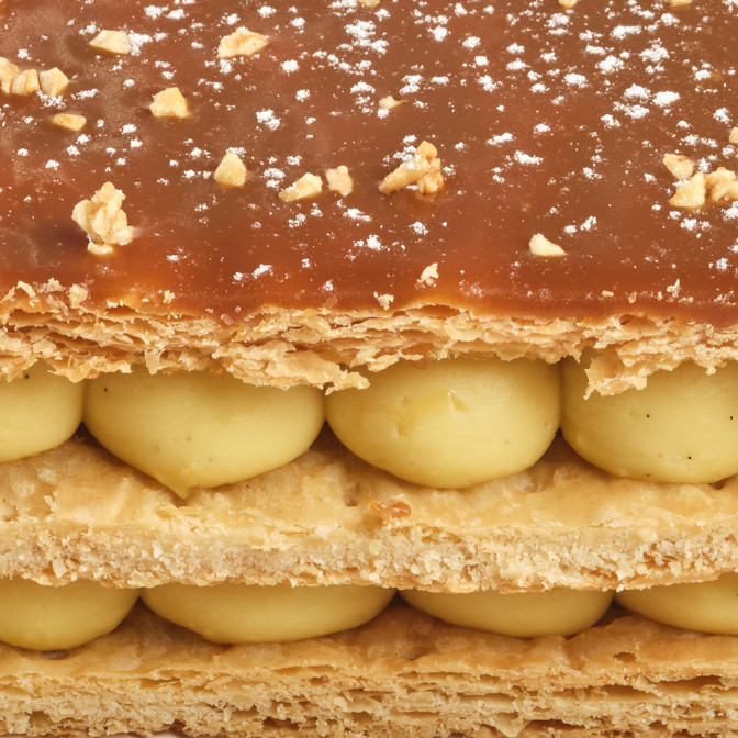 Feuilletage au beurre AOP, crème pâtissière à la vanille de Madagascar et caramel au beurre salé