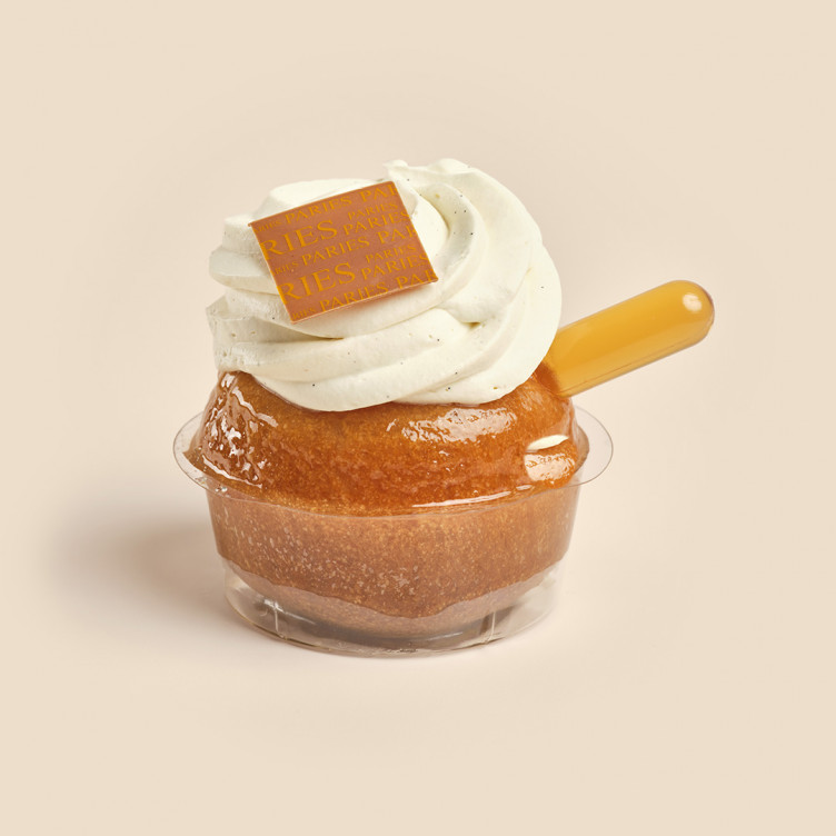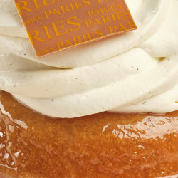 Baba imbibé de sirop de rhum garni de crème chantilly mascarpone à la vanille de Madagascar.